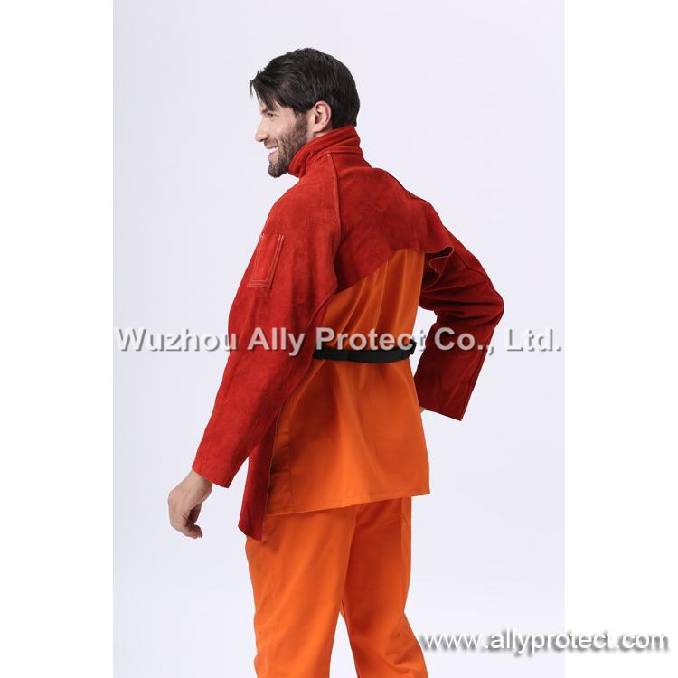 • Product description: [ AP ]Split cowhide cape sleeves with bib garment offering the perfect cool using. You can freely use this cape to protect the arms or torso from welding spatters and heat.