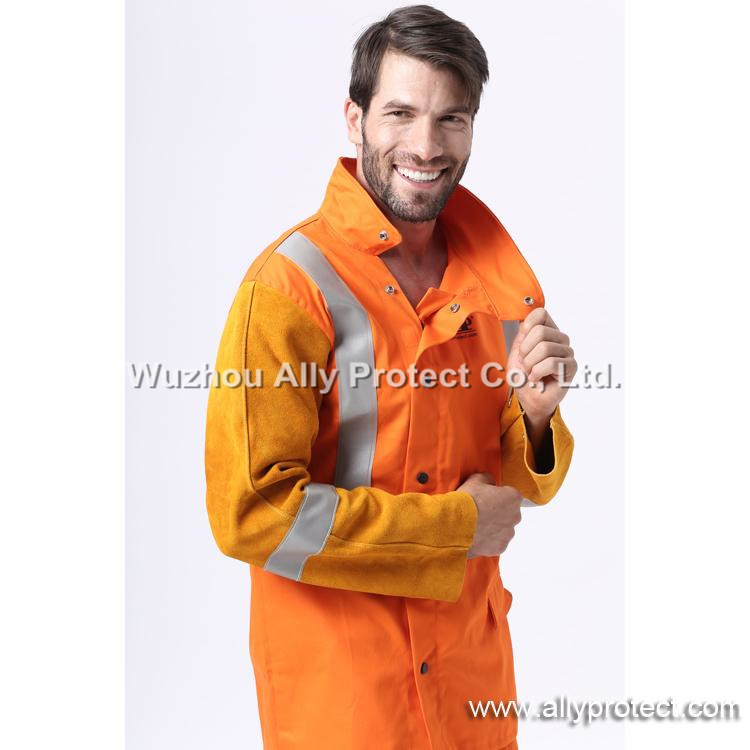AP-2730 Orange FR & Golden Leather W/HI-VIS Reflective Tape Jacket