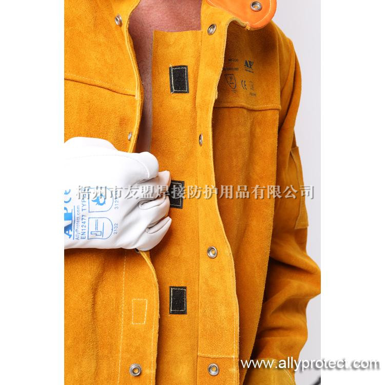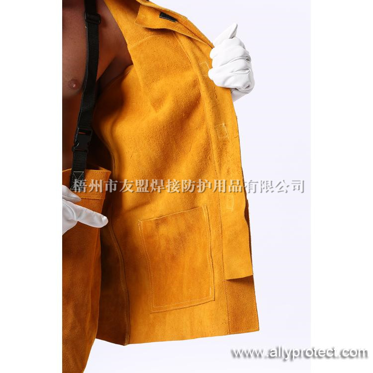 - 產(chǎn)品描述: [ AP ]金黃色牛二層芯皮全皮上身焊服,能夠在焊接飛濺嚴重的環(huán)境中,給使用者的身體提供安全有效的保護。