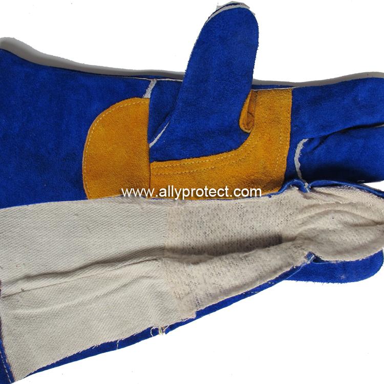 • 產(chǎn)品描述: [ AP ]彩藍色牛二層皮全皮電焊手套,斜拇指、加寬護掌層和護腕設(shè)計,適用于焊接、切割及搬運等用途。